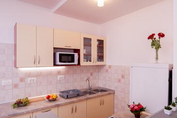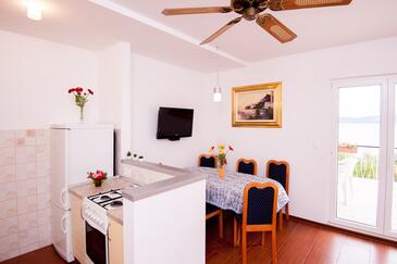 Ferienwohnung bietet Platz für 8 Gäste. Die Betten sind in Schlafzimmern, die es 3 gibt, und in Esszimmer, innerhalb einer Gesamtfläche von 75m2, angeordnet. Die Gäste haben eine eigene Terrasse zur Verfügung, auf der sie in warmen Sommernächten genießen können. Das Apartment bietet Meerblick. Für vollen Genuss und Entspannung gibt es einen privaten Grill für Gäste dieser Unterkunft.