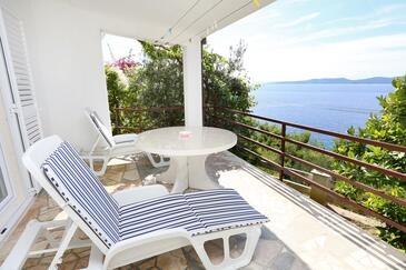 Ferienwohnung bietet Platz für 6 Gäste. Die Betten sind in Schlafzimmern, die es 3 gibt, innerhalb einer Gesamtfläche von 52m2, angeordnet. Die Gäste haben eine eigene Terrasse zur Verfügung, auf der sie in warmen Sommernächten genießen können. Das Apartment bietet Meerblick. Es ist erlaubt, Speisen auf dem Gemeinschafts-Grill vorzubereiten. In der Unterkunftseinheit besteht die Möglichkeit des Mitbringens von Haustieren gegen Aufpreis.