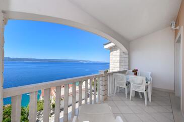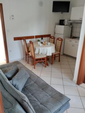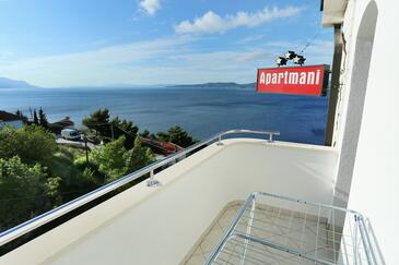 Ferienwohnung bietet Platz für 4 Gäste. Die Betten sind in Schlafzimmern, die es 2 gibt, innerhalb einer Gesamtfläche von 35m2, angeordnet. Die Gäste haben eine eigene Terrasse zur Verfügung, auf der sie in warmen Sommernächten genießen können. Das Apartment bietet Meerblick. Es ist erlaubt, Speisen auf dem Gemeinschafts-Grill vorzubereiten.