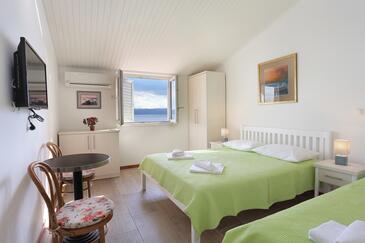 Ferienwohnung bietet Platz für 4 Gäste. Die Betten sind in Schlafzimmern, die es 2 gibt, innerhalb einer Gesamtfläche von 33m2, angeordnet. Die Gäste haben eine eigene Terrasse zur Verfügung, auf der sie in warmen Sommernächten genießen können. Das Apartment bietet Meerblick.