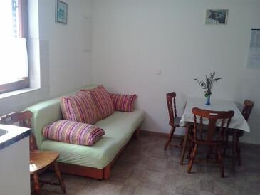 Studio bietet Platz für 3 Gäste. Die Betten sind in Schlafzimmern, die es 1 gibt, und in Esszimmer, innerhalb einer Gesamtfläche von 26m2, angeordnet. Die Gäste haben eine eigene Terrasse zur Verfügung, auf der sie in warmen Sommernächten genießen können. Das Studio-Apartment bietet Meerblick. Es ist erlaubt, Speisen auf dem Gemeinschafts-Grill vorzubereiten.