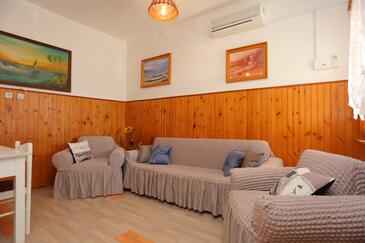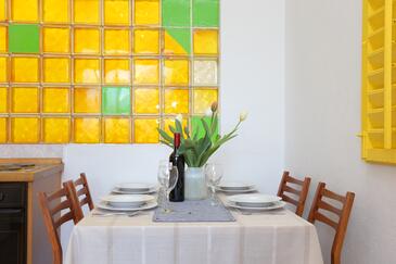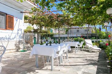 Ferienwohnung bietet Platz für 6 Gäste. Die Betten sind in Schlafzimmern, die es 2 gibt, und in Wohnzimmer, innerhalb einer Gesamtfläche von 59m2, angeordnet. Die Gäste haben eine eigene Terrasse zur Verfügung, auf der sie in warmen Sommernächten genießen können. Das Apartment bietet Meerblick. Es ist erlaubt, Speisen auf dem Gemeinschafts-Grill vorzubereiten.