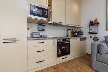 Ferienwohnung bietet Platz für 5 Gäste. Die Betten sind in Schlafzimmern, die es 1 gibt, und in Wohnzimmer, innerhalb einer Gesamtfläche von 39m2, angeordnet. Die Gäste haben einen eigenen Balkon zur Verfügung, auf der sie in warmen Sommernächten genießen können. Das Apartment bietet Meerblick.
