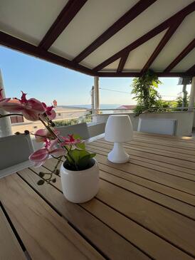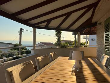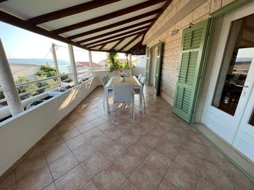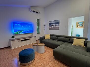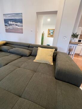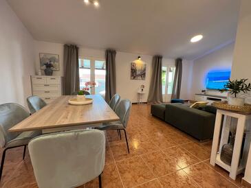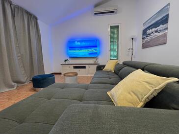 Haus bietet Platz für 8 Gäste. Die Betten sind in Schlafzimmern, die es 3 gibt, und in Wohnzimmer, innerhalb einer Gesamtfläche von 100m2, angeordnet. Die Gäste haben eine eigene Terrasse zur Verfügung, auf der sie in warmen Sommernächten genießen können. Das Haus bietet Meerblick. Für vollen Genuss und Entspannung gibt es einen privaten Grill für Gäste dieser Unterkunft.