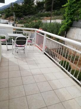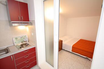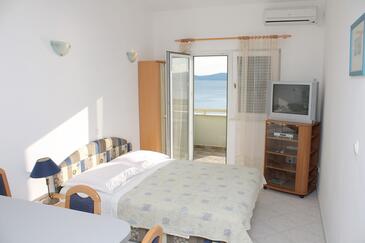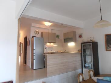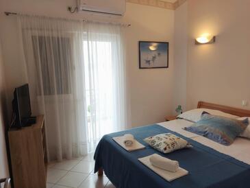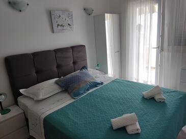 Ferienwohnung bietet Platz für 4 Gäste. Die Betten sind in Schlafzimmern, die es 2 gibt, innerhalb einer Gesamtfläche von 30m2, angeordnet. Die Gäste haben eine eigene Terrasse zur Verfügung, auf der sie in warmen Sommernächten genießen können. Das Apartment bietet Meerblick. Es ist erlaubt, Speisen auf dem Gemeinschafts-Grill vorzubereiten.
