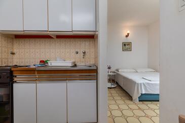 Ferienwohnung bietet Platz für 4 Gäste. Die Betten sind in Schlafzimmern, die es 1 gibt, und in Wohnzimmer, innerhalb einer Gesamtfläche von 32m2, angeordnet. Die Gäste haben einen eigenen Balkon zur Verfügung, auf der sie in warmen Sommernächten genießen können. Das Apartment bietet Meerblick. Es ist erlaubt, Speisen auf dem Gemeinschafts-Grill vorzubereiten.
