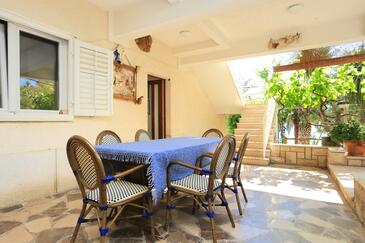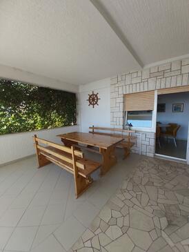 Ferienwohnung bietet Platz für 6 Gäste. Die Betten sind in Schlafzimmern, die es 3 gibt, innerhalb einer Gesamtfläche von 64m2, angeordnet. Die Gäste haben eine eigene Terrasse zur Verfügung, auf der sie in warmen Sommernächten genießen können. Das Apartment bietet Meerblick. Es ist erlaubt, Speisen auf dem Gemeinschafts-Grill vorzubereiten. Durch die Terrasse der gebuchten Unterkunftseinheit gehen auch andere Gäste oder Vermieter.