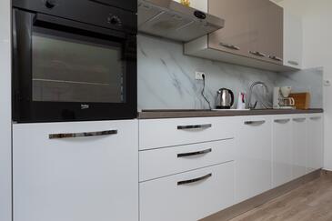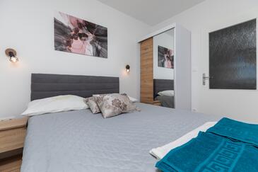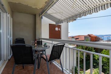 Ferienwohnung bietet Platz für 6 Gäste. Die Betten sind in Schlafzimmern, die es 3 gibt, innerhalb einer Gesamtfläche von 84m2, angeordnet. Die Gäste haben einen eigenen Balkon zur Verfügung, auf der sie in warmen Sommernächten genießen können. Das Apartment bietet Meerblick. Es ist erlaubt, Speisen auf dem Gemeinschafts-Grill vorzubereiten.