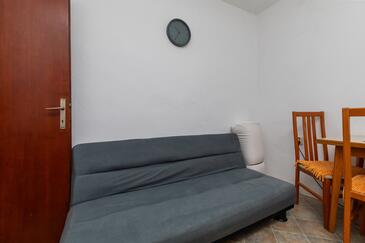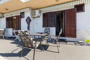 Ferienwohnung bietet Platz für 4 Gäste. Die Betten sind in Schlafzimmern, die es 1 gibt, und in Esszimmer, innerhalb einer Gesamtfläche von 31m2, angeordnet. Die Gäste haben eine eigene Terrasse zur Verfügung, auf der sie in warmen Sommernächten genießen können. Das Apartment bietet Meerblick. Es ist erlaubt, Speisen auf dem Gemeinschafts-Grill vorzubereiten. Durch die Terrasse der gebuchten Unterkunftseinheit gehen auch andere Gäste oder Vermieter.