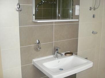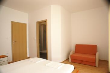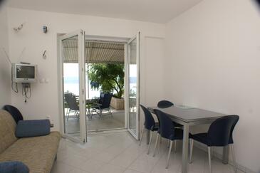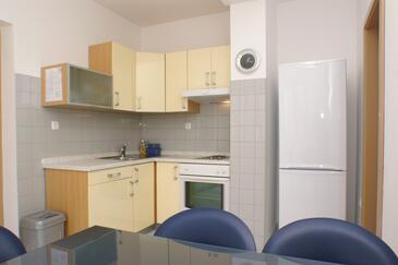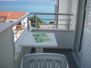 Ferienwohnung bietet Platz für 4 Gäste. Die Betten sind in Schlafzimmern, die es 2 gibt, innerhalb einer Gesamtfläche von 45m2, angeordnet. Die Gäste haben eine eigene Terrasse zur Verfügung, auf der sie in warmen Sommernächten genießen können. Das Apartment bietet Meerblick. Es ist erlaubt, Speisen auf dem Gemeinschafts-Grill vorzubereiten. Durch die Terrasse der gebuchten Unterkunftseinheit gehen auch andere Gäste oder Vermieter.