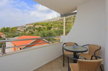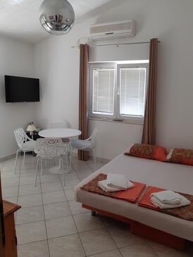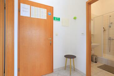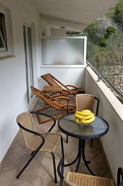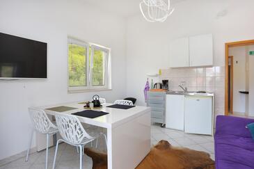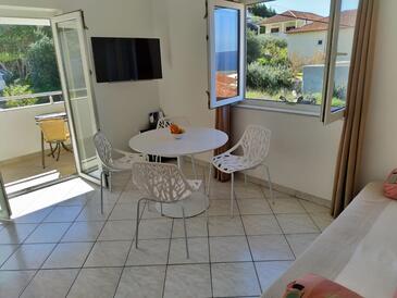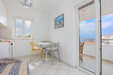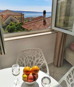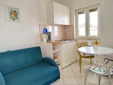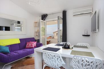 Ferienwohnung bietet Platz für 2 Gäste. Die Betten sind in Schlafzimmern, die es 1 gibt, innerhalb einer Gesamtfläche von 27m2, angeordnet. Die Gäste haben eine eigene Terrasse zur Verfügung, auf der sie in warmen Sommernächten genießen können. Das Apartment bietet Meerblick. Es ist erlaubt, Speisen auf dem Gemeinschafts-Grill vorzubereiten.