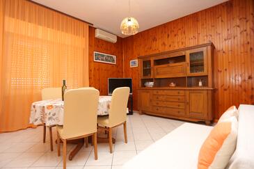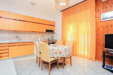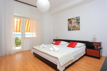 Ferienwohnung bietet Platz für 4 Gäste. Die Betten sind in Schlafzimmern, die es 2 gibt, innerhalb einer Gesamtfläche von 64m2, angeordnet. Die Gäste haben eine eigene Terrasse zur Verfügung, auf der sie in warmen Sommernächten genießen können. Das Apartment bietet Meerblick. Es ist erlaubt, Speisen auf dem Gemeinschafts-Grill vorzubereiten.
