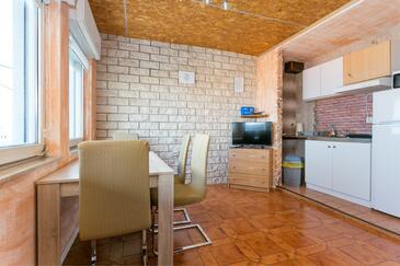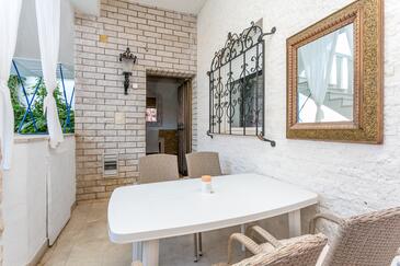 Ferienwohnung bietet Platz für 4 Gäste. Die Betten sind in Schlafzimmern, die es 2 gibt, innerhalb einer Gesamtfläche von 55m2, angeordnet. Die Gäste haben eine eigene Terrasse zur Verfügung, auf der sie in warmen Sommernächten genießen können. Das Apartment bietet Meerblick. Für vollen Genuss und Entspannung gibt es einen privaten Grill für Gäste dieser Unterkunft. Während ihres Aufenthalts können Gäste das gemeinsam zur Nutzung stehende Schwimmbad benutzen. In der Unterkunftseinheit besteht die Möglichkeit des Mitbringens von Haustieren gegen Aufpreis.