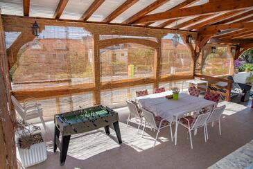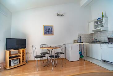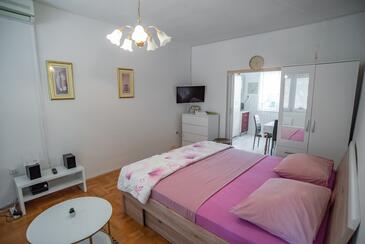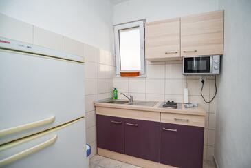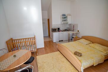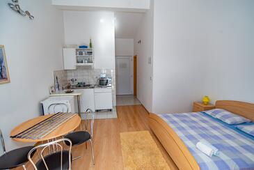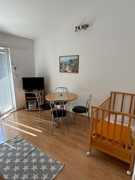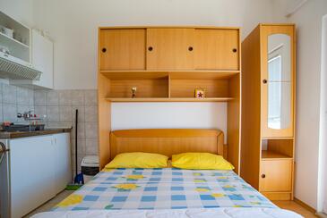 Ferienwohnung bietet Platz für 4 Gäste. Die Betten sind in Schlafzimmern, die es 1 gibt, und in Wohnzimmer, innerhalb einer Gesamtfläche von 29m2, angeordnet. Die Gäste haben eine eigene Terrasse zur Verfügung, auf der sie in warmen Sommernächten genießen können. Das Apartment bietet Meerblick. Es ist erlaubt, Speisen auf dem Gemeinschafts-Grill vorzubereiten.