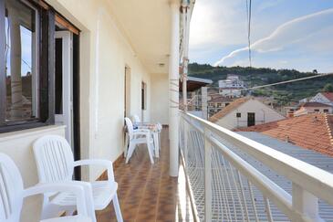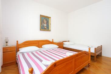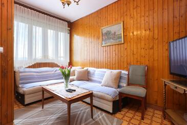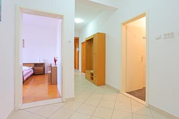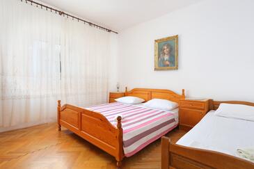 Ferienwohnung bietet Platz für 8 Gäste. Die Betten sind in Schlafzimmern, die es 3 gibt, innerhalb einer Gesamtfläche von 86m2, angeordnet. Die Gäste haben einen eigenen Balkon zur Verfügung, auf der sie in warmen Sommernächten genießen können. Das Apartment bietet Meerblick. Es ist erlaubt, Speisen auf dem Gemeinschafts-Grill vorzubereiten.