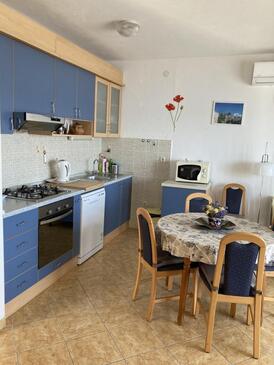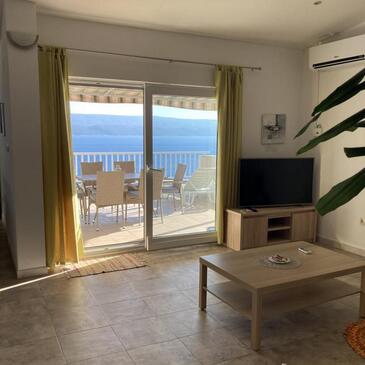 Ferienwohnung bietet Platz für 4 Gäste. Die Betten sind in Schlafzimmern, die es 2 gibt, innerhalb einer Gesamtfläche von 62m2, angeordnet. Die Gäste haben eine eigene Terrasse zur Verfügung, auf der sie in warmen Sommernächten genießen können. Das Apartment bietet Meerblick. Es ist erlaubt, Speisen auf dem Gemeinschafts-Grill vorzubereiten.