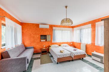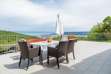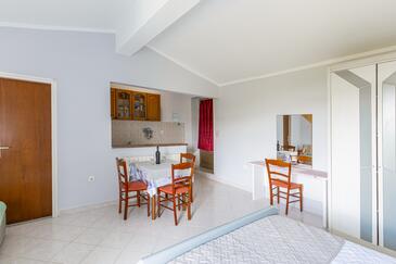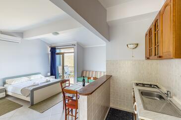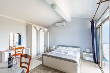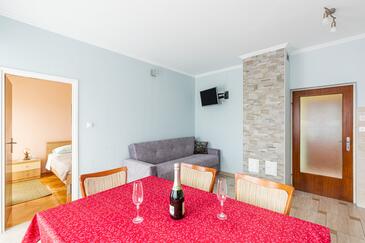 Ferienwohnung bietet Platz für 5 Gäste. Die Betten sind in Schlafzimmern, die es 2 gibt, und in Esszimmer, innerhalb einer Gesamtfläche von 46m2, angeordnet. Die Gäste haben eine eigene Terrasse zur Verfügung, auf der sie in warmen Sommernächten genießen können. Das Apartment bietet Meerblick. Es ist erlaubt, Speisen auf dem Gemeinschafts-Grill vorzubereiten. In der Unterkunftseinheit besteht die Möglichkeit des Mitbringens von Haustieren gegen Aufpreis. Durch die Terrasse der gebuchten Unterkunftseinheit gehen auch andere Gäste oder Vermieter.