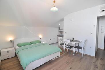 Studio bietet Platz für 2 Gäste. Die Betten sind in Schlafzimmern, die es 1 gibt, innerhalb einer Gesamtfläche von 26m2, angeordnet. Die Gäste haben einen eigenen Balkon zur Verfügung, auf der sie in warmen Sommernächten genießen können. Das Studio-Apartment bietet Meerblick.