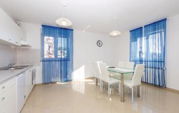 Ferienwohnung bietet Platz für 6 Gäste. Die Betten sind in Schlafzimmern, die es 3 gibt, innerhalb einer Gesamtfläche von 126m2, angeordnet. Die Gäste haben eine eigene Terrasse zur Verfügung, auf der sie in warmen Sommernächten genießen können. Es ist erlaubt, Speisen auf dem Gemeinschafts-Grill vorzubereiten.