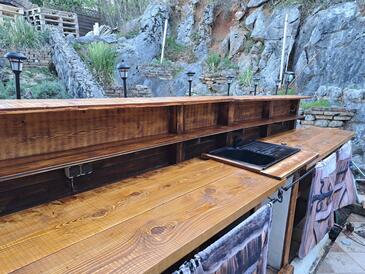 Haus bietet Platz für 12 Gäste. Die Betten sind in Schlafzimmern, die es 5 gibt, innerhalb einer Gesamtfläche von 234m2, angeordnet. Die Gäste haben eine eigene Terrasse zur Verfügung, auf der sie in warmen Sommernächten genießen können. Das Haus bietet Meerblick. Für vollen Genuss und Entspannung gibt es einen privaten Grill für Gäste dieser Unterkunft. Während ihres Aufenthalts können sich Gäste im privaten Schwimmbad entspannen. In der Unterkunftseinheit besteht die Möglichkeit des Mitbringens von Haustieren, und die Dienstleistung ist im Preis der Unterkunft enthalten.