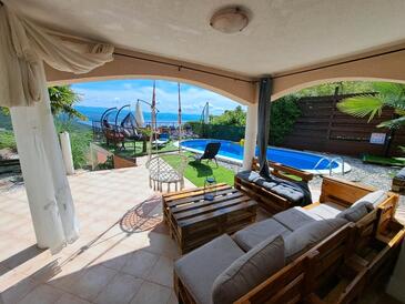 Haus bietet Platz für 12 Gäste. Die Betten sind in Schlafzimmern, die es 5 gibt, innerhalb einer Gesamtfläche von 234m2, angeordnet. Die Gäste haben eine eigene Terrasse zur Verfügung, auf der sie in warmen Sommernächten genießen können. Das Haus bietet Meerblick. Es ist erlaubt, Speisen auf dem Gemeinschafts-Grill vorzubereiten. Während ihres Aufenthalts können Gäste das gemeinsam zur Nutzung stehende Schwimmbad benutzen. In der Unterkunftseinheit besteht die Möglichkeit des Mitbringens von Haustieren, und die Dienstleistung ist im Preis der Unterkunft enthalten.