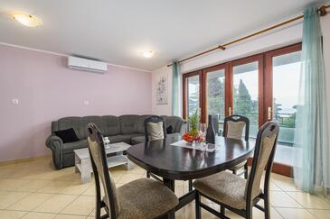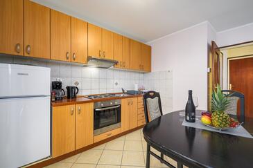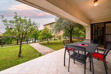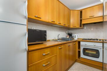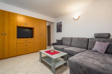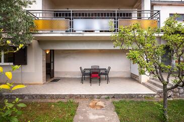 Ferienwohnung bietet Platz für 5 Gäste. Die Betten sind in Schlafzimmern, die es 2 gibt, und in Wohnzimmer, innerhalb einer Gesamtfläche von 53m2, angeordnet. Die Gäste haben eine eigene Terrasse zur Verfügung, auf der sie in warmen Sommernächten genießen können. Das Apartment bietet Meerblick. Es ist erlaubt, Speisen auf dem Gemeinschafts-Grill vorzubereiten.
