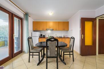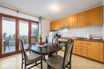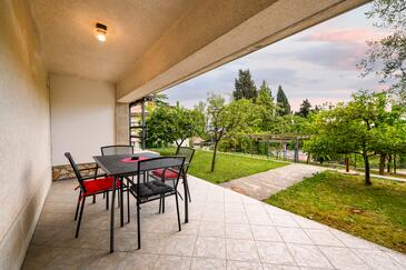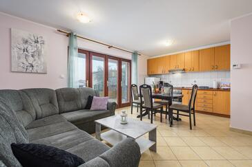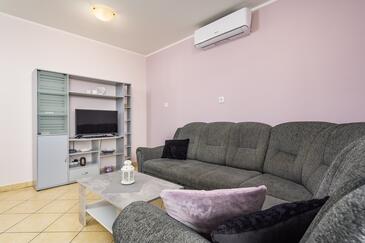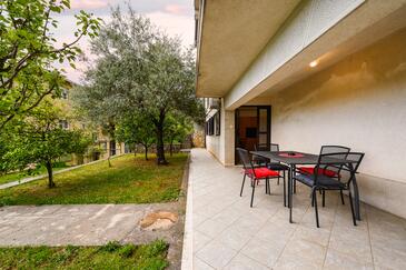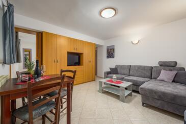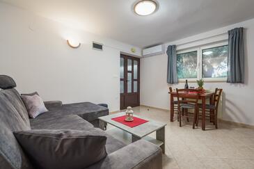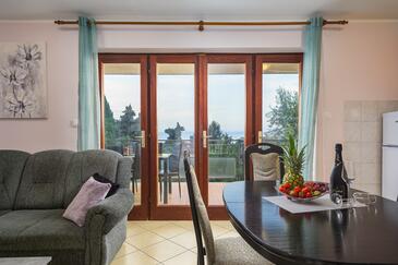 Ferienwohnung bietet Platz für 5 Gäste. Die Betten sind in Schlafzimmern, die es 2 gibt, und in Wohnzimmer, innerhalb einer Gesamtfläche von 53m2, angeordnet. Die Gäste haben eine eigene Terrasse zur Verfügung, auf der sie in warmen Sommernächten genießen können. Das Apartment bietet Meerblick. Es ist erlaubt, Speisen auf dem Gemeinschafts-Grill vorzubereiten.