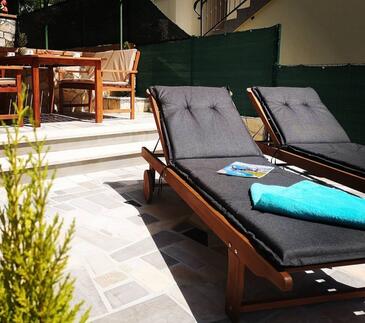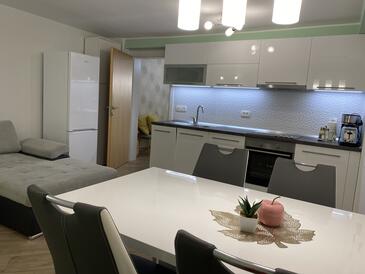 Ferienwohnung bietet Platz für 4 Gäste. Die Betten sind in Schlafzimmern, die es 1 gibt, und in Wohnzimmer, innerhalb einer Gesamtfläche von 45m2, angeordnet. Die Gäste haben eine eigene Terrasse zur Verfügung, auf der sie in warmen Sommernächten genießen können. Für vollen Genuss und Entspannung gibt es einen privaten Grill für Gäste dieser Unterkunft.