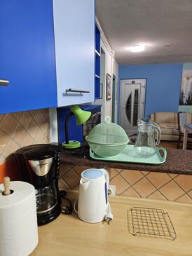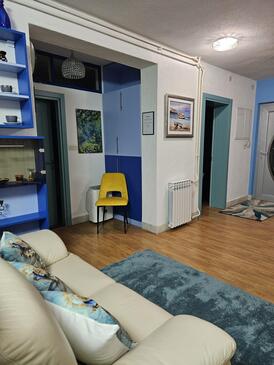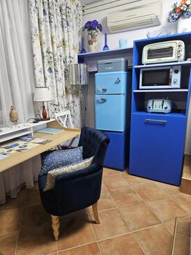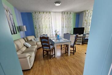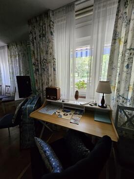 Ferienwohnung bietet Platz für 5 Gäste. Die Betten sind in Schlafzimmern, die es 2 gibt, und in Wohnzimmer, innerhalb einer Gesamtfläche von 65m2, angeordnet. Die Gäste haben eine eigene Terrasse zur Verfügung, auf der sie in warmen Sommernächten genießen können. Es ist erlaubt, Speisen auf dem Gemeinschafts-Grill vorzubereiten. In der gebuchten Unterkunftseinheit zahlt man am Ort ein Depositum ( der Preis ist an der Internetseite angeführt ).