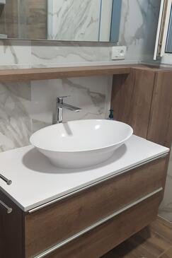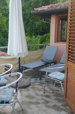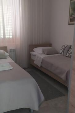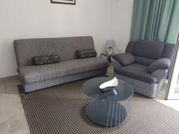 Ferienwohnung bietet Platz für 6 Gäste. Die Betten sind in Schlafzimmern, die es 3 gibt, innerhalb einer Gesamtfläche von 74m2, angeordnet. Die Gäste haben eine eigene Terrasse zur Verfügung, auf der sie in warmen Sommernächten genießen können. Das Apartment bietet Meerblick. Es ist erlaubt, Speisen auf dem Gemeinschafts-Grill vorzubereiten.