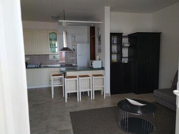 Ferienwohnung bietet Platz für 6 Gäste. Die Betten sind in Schlafzimmern, die es 3 gibt, innerhalb einer Gesamtfläche von 74m2, angeordnet. Die Gäste haben eine eigene Terrasse zur Verfügung, auf der sie in warmen Sommernächten genießen können. Das Apartment bietet Meerblick. Es ist erlaubt, Speisen auf dem Gemeinschafts-Grill vorzubereiten.