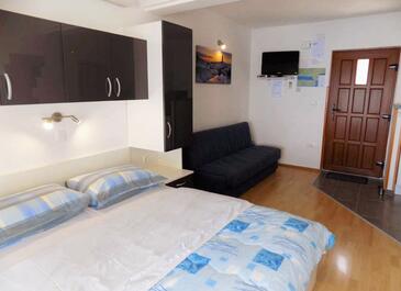 Ferienwohnung bietet Platz für 3 Gäste. Die Betten sind in Schlafzimmern, die es 1 gibt, und in Wohnzimmer, innerhalb einer Gesamtfläche von 31m2, angeordnet. Die Gäste haben eine eigene Terrasse zur Verfügung, auf der sie in warmen Sommernächten genießen können. Das Apartment bietet Meerblick. Es ist erlaubt, Speisen auf dem Gemeinschafts-Grill vorzubereiten.