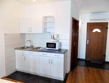 Ferienwohnung bietet Platz für 3 Gäste. Die Betten sind in Schlafzimmern, die es 1 gibt, und in Wohnzimmer, innerhalb einer Gesamtfläche von 31m2, angeordnet. Die Gäste haben eine eigene Terrasse zur Verfügung, auf der sie in warmen Sommernächten genießen können. Das Apartment bietet Meerblick. Es ist erlaubt, Speisen auf dem Gemeinschafts-Grill vorzubereiten.