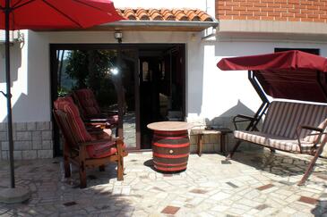 Ferienwohnung bietet Platz für 2 Gäste. Die Betten sind in Schlafzimmern, die es 1 gibt, innerhalb einer Gesamtfläche von 28m2, angeordnet. Die Gäste haben eine eigene Terrasse zur Verfügung, auf der sie in warmen Sommernächten genießen können.