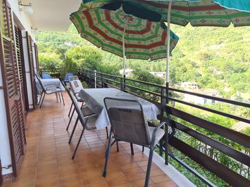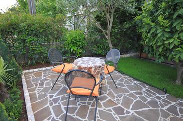 Ferienwohnung bietet Platz für 8 Gäste. Die Betten sind in Schlafzimmern, die es 3 gibt, innerhalb einer Gesamtfläche von 88m2, angeordnet. Die Gäste haben eine eigene Terrasse zur Verfügung, auf der sie in warmen Sommernächten genießen können. Das Apartment bietet Meerblick. Es ist erlaubt, Speisen auf dem Gemeinschafts-Grill vorzubereiten. In der Unterkunftseinheit besteht die Möglichkeit des Mitbringens von Haustieren gegen Aufpreis.