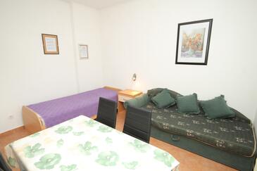 Ferienwohnung bietet Platz für 3 Gäste. Die Betten sind in Schlafzimmern, die es 1 gibt, und in Wohnzimmer, innerhalb einer Gesamtfläche von 35m2, angeordnet. Die Gäste haben eine eigene Terrasse zur Verfügung, auf der sie in warmen Sommernächten genießen können. Das Apartment bietet Meerblick. Es ist erlaubt, Speisen auf dem Gemeinschafts-Grill vorzubereiten.