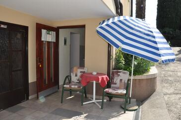 Ferienwohnung bietet Platz für 5 Gäste. Die Betten sind in Schlafzimmern, die es 1 gibt, und in Wohnzimmer, innerhalb einer Gesamtfläche von 33m2, angeordnet. Die Gäste haben eine eigene Terrasse zur Verfügung, auf der sie in warmen Sommernächten genießen können. Das Apartment bietet Meerblick.
