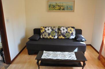 Ferienwohnung bietet Platz für 5 Gäste. Die Betten sind in Schlafzimmern, die es 1 gibt, und in Wohnzimmer, innerhalb einer Gesamtfläche von 33m2, angeordnet. Die Gäste haben eine eigene Terrasse zur Verfügung, auf der sie in warmen Sommernächten genießen können. Das Apartment bietet Meerblick.
