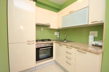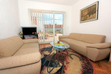 Ferienwohnung bietet Platz für 4 Gäste. Die Betten sind in Schlafzimmern, die es 2 gibt, innerhalb einer Gesamtfläche von 39m2, angeordnet. Die Gäste haben eine eigene Terrasse zur Verfügung, auf der sie in warmen Sommernächten genießen können. Das Apartment bietet Meerblick. Es ist erlaubt, Speisen auf dem Gemeinschafts-Grill vorzubereiten.