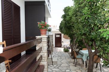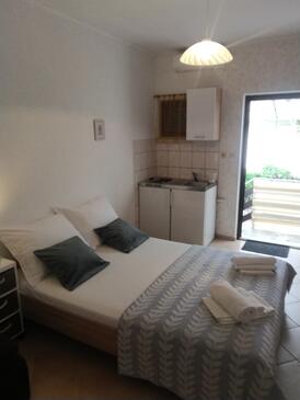 Ferienwohnung bietet Platz für 4 Gäste. Die Betten sind in Schlafzimmern, die es 2 gibt, innerhalb einer Gesamtfläche von 55m2, angeordnet. Die Gäste haben eine eigene Terrasse zur Verfügung, auf der sie in warmen Sommernächten genießen können. Es ist erlaubt, Speisen auf dem Gemeinschafts-Grill vorzubereiten.