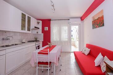 Ferienwohnung bietet Platz für 3 Gäste. Die Betten sind in Schlafzimmern, die es 1 gibt, innerhalb einer Gesamtfläche von 42m2, angeordnet. Die Gäste haben eine eigene Terrasse zur Verfügung, auf der sie in warmen Sommernächten genießen können. Es ist erlaubt, Speisen auf dem Gemeinschafts-Grill vorzubereiten.