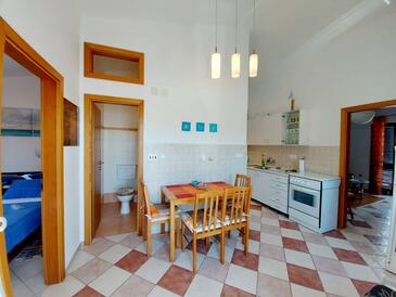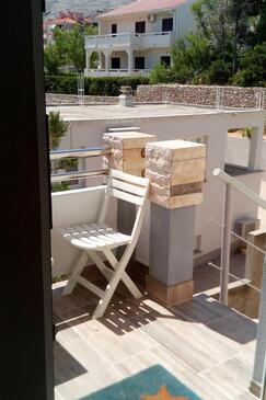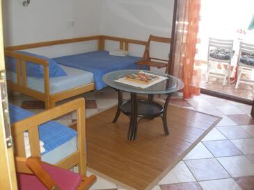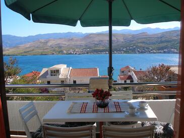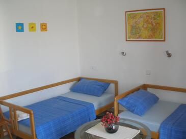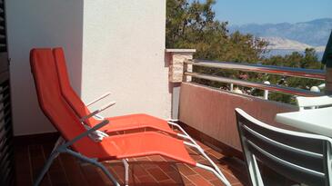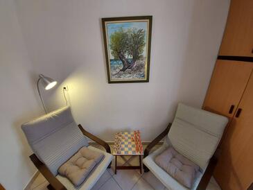 Ferienwohnung bietet Platz für 4 Gäste. Die Betten sind in Schlafzimmern, die es 2 gibt, innerhalb einer Gesamtfläche von 44m2, angeordnet. Die Gäste haben eine eigene Terrasse zur Verfügung, auf der sie in warmen Sommernächten genießen können. Das Apartment bietet Meerblick. Es ist erlaubt, Speisen auf dem Gemeinschafts-Grill vorzubereiten.