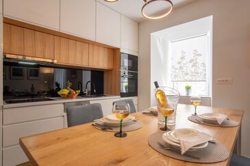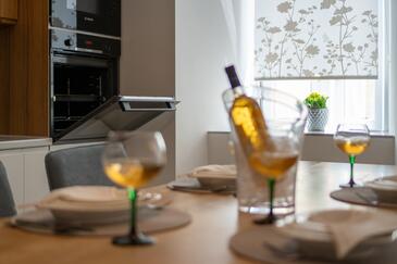 Ferienwohnung bietet Platz für 5 Gäste. Die Betten sind in Schlafzimmern, die es 2 gibt, und in Wohnzimmer, innerhalb einer Gesamtfläche von 53m2, angeordnet. Die reservierte Unterkunftseinheit hat keinen Balkon und keine Terrasse.