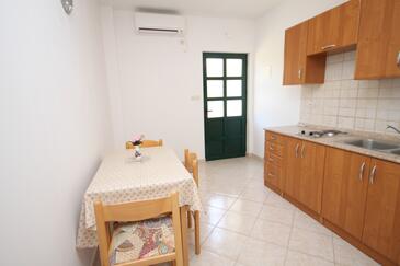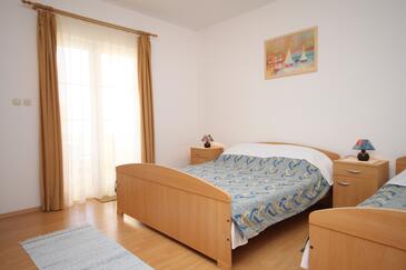 Ferienwohnung bietet Platz für 6 Gäste. Die Betten sind in Schlafzimmern, die es 3 gibt, innerhalb einer Gesamtfläche von 73m2, angeordnet. Die Gäste haben eine eigene Terrasse zur Verfügung, auf der sie in warmen Sommernächten genießen können. Das Apartment bietet Meerblick. Es ist erlaubt, Speisen auf dem Gemeinschafts-Grill vorzubereiten.
