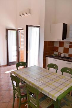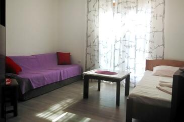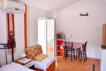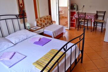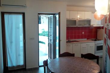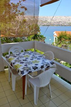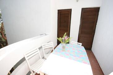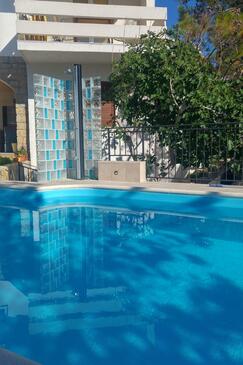 Ferienwohnung bietet Platz für 5 Gäste. Die Betten sind in Schlafzimmern, die es 2 gibt, und in Wohnzimmer, innerhalb einer Gesamtfläche von 56m2, angeordnet. Die Gäste haben eine eigene Terrasse zur Verfügung, auf der sie in warmen Sommernächten genießen können. Das Apartment bietet Meerblick. Es ist erlaubt, Speisen auf dem Gemeinschafts-Grill vorzubereiten. Während ihres Aufenthalts können Gäste das gemeinsam zur Nutzung stehende Schwimmbad benutzen.