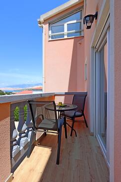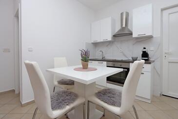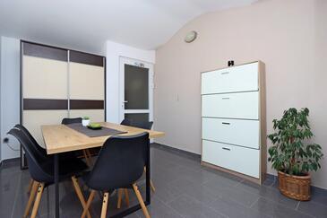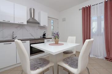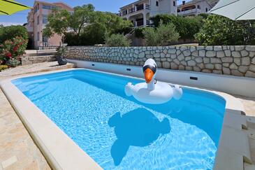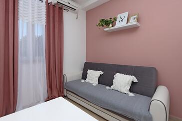 Ferienwohnung bietet Platz für 5 Gäste. Die Betten sind in Schlafzimmern, die es 2 gibt, und in Wohnzimmer, innerhalb einer Gesamtfläche von 63m2, angeordnet. Die Gäste haben eine eigene Terrasse zur Verfügung, auf der sie in warmen Sommernächten genießen können. Das Apartment bietet Meerblick. Es ist erlaubt, Speisen auf dem Gemeinschafts-Grill vorzubereiten. Während ihres Aufenthalts können Gäste das gemeinsam zur Nutzung stehende Schwimmbad benutzen.