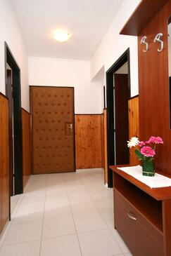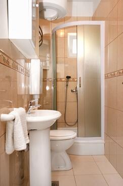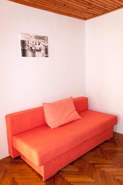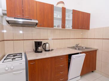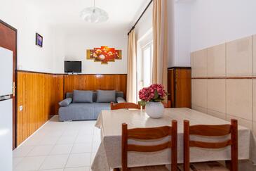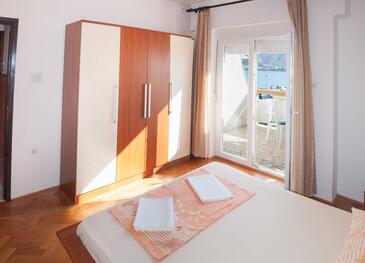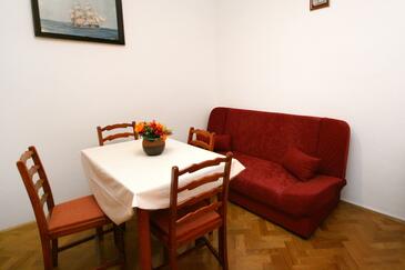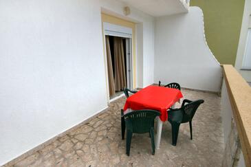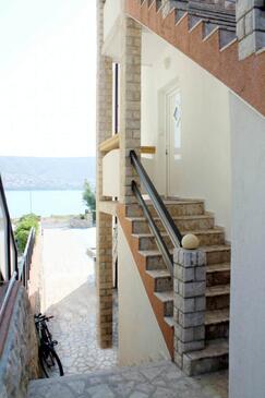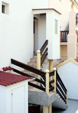 Ferienwohnung bietet Platz für 5 Gäste. Die Betten sind in Schlafzimmern, die es 2 gibt, innerhalb einer Gesamtfläche von 57m2, angeordnet. Die Gäste haben eine eigene Terrasse zur Verfügung, auf der sie in warmen Sommernächten genießen können. Das Apartment bietet Meerblick. Es ist erlaubt, Speisen auf dem Gemeinschafts-Grill vorzubereiten.