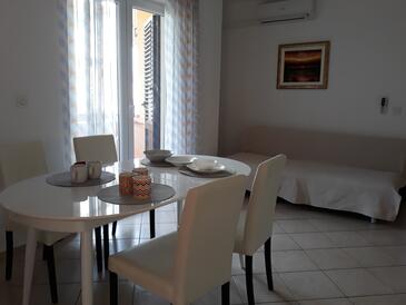 Ferienwohnung bietet Platz für 4 Gäste. Die Betten sind in Schlafzimmern, die es 2 gibt, innerhalb einer Gesamtfläche von 54m2, angeordnet. Die Gäste haben eine eigene Terrasse zur Verfügung, auf der sie in warmen Sommernächten genießen können. Das Apartment bietet Meerblick. Es ist erlaubt, Speisen auf dem Gemeinschafts-Grill vorzubereiten. In der Unterkunftseinheit besteht die Möglichkeit des Mitbringens von Haustieren gegen Aufpreis.