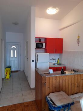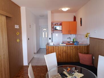 Ferienwohnung bietet Platz für 4 Gäste. Die Betten sind in Schlafzimmern, die es 2 gibt, innerhalb einer Gesamtfläche von 34m2, angeordnet. Die Gäste haben eine eigene Terrasse zur Verfügung, auf der sie in warmen Sommernächten genießen können. Das Apartment bietet Meerblick. Es ist erlaubt, Speisen auf dem Gemeinschafts-Grill vorzubereiten.