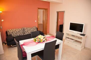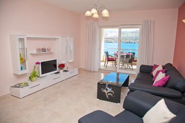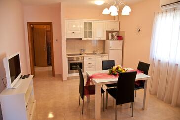 Ferienwohnung bietet Platz für 6 Gäste. Die Betten sind in Schlafzimmern, die es 2 gibt, und in Wohnzimmer, innerhalb einer Gesamtfläche von 92m2, angeordnet. Die Gäste haben eine eigene Terrasse zur Verfügung, auf der sie in warmen Sommernächten genießen können. Das Apartment bietet Meerblick. Es ist erlaubt, Speisen auf dem Gemeinschafts-Grill vorzubereiten. In der gebuchten Unterkunftseinheit zahlt man am Ort ein Depositum ( der Preis ist an der Internetseite angeführt ).